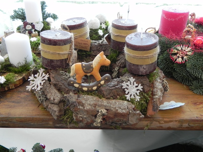 Unser Stand mit Kränzen und Gestecken (nochmals vielen Dank für die tollen Holzspenden). Wir haben wie immer viel Arbeit rein gesteckt und wurden regelrecht geplündert 😉