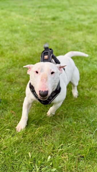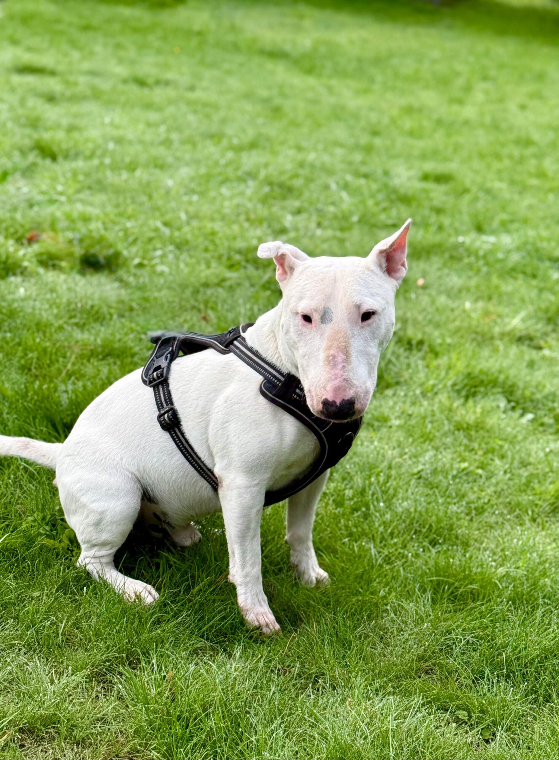 Bubbel ist ein Miniatur Bullterrier, geschätzt etwa 5 Jahre alt. Er kam zu uns ins Tierheim und hat sich hier bereits gut eingelebt. Menschen gegenüber zeigt er sich sehr nett, und sobald er Vertrauen gefasst hat, entpuppt er sich als verschmuster und liebevoller Begleiter.