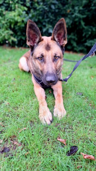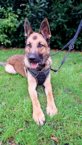 Er beherrscht bereits die Grundkommandos und zeigt sich dabei sehr gelehrig und aufmerksam. Auch beim Spaziergang läuft er ordentlich an der Leine – Fahrräder bringen ihn nicht aus der Ruhe. Bei Begegnungen mit anderen Hunden fährt er jedoch schnell hoch, daran muss unbedingt weiter gearbeitet werden.