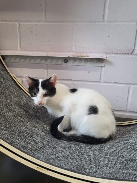 Kim, Joano und Penny wurden am 04.05.2025 bei uns im Tierheim geboren. Sie sind schwarz-weiß, geimpft, kastriert und sollen in reine Wohnungshaltung vermittelt werden. Das Trio darf nur gemeinsam vermittelt werden, da sie eine enge Bindung zueinander haben.