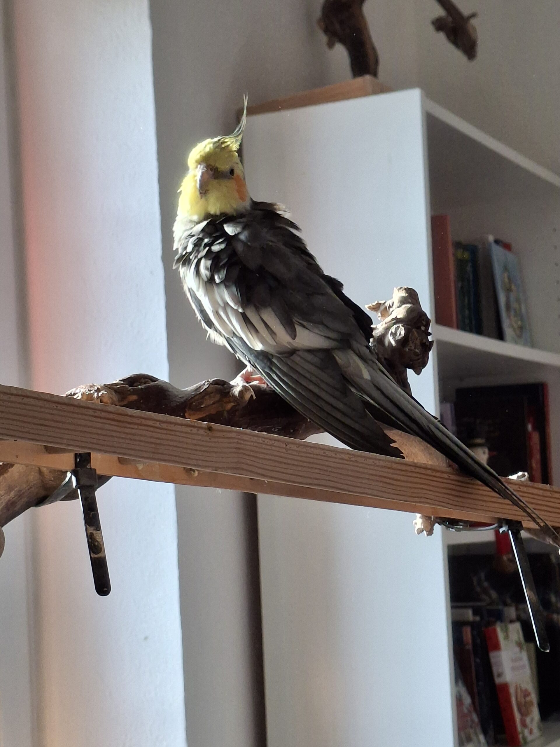 Er ist seit August hier und lebt sich immer besser ein mit seinen neuen Freunden. Er ist eher ruhig und deshalb passt er sehr gut auch zu meinen beiden älteren Nymphies. Er frisst Hirse aus der Hand und ist sehr lieb. Er ist gerne draußen und sitzt gerne in der Sonne.